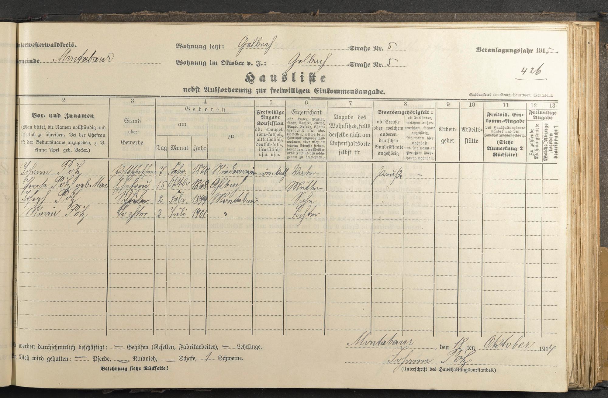 Haushaltsliste 1915, Band I., Abteilung 4, A 280