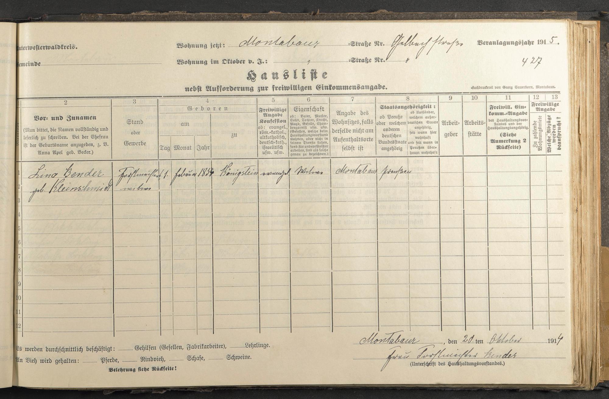 Haushaltsliste 1915, Band I., Abteilung 4, A 280