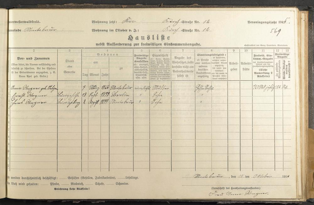 Haushaltsliste 1914/15, Kirchstraße bis Markt