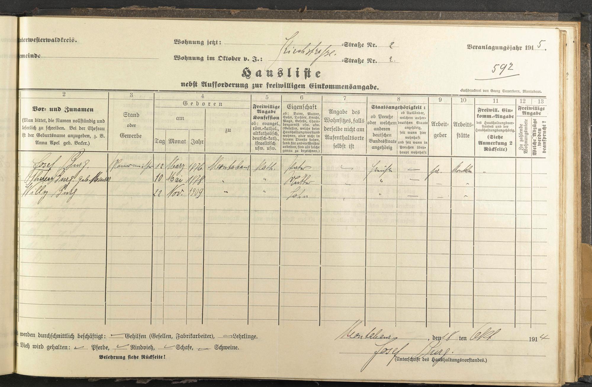 Haushaltsliste 1914/15, Kirchstraße bis Markt