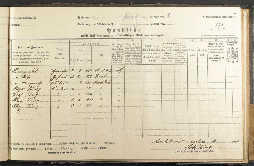 King, Johann King, Luise geb. Mittnacht King, Margaretha King, Hugo King, Joseph King, Heinrich King, Alexander