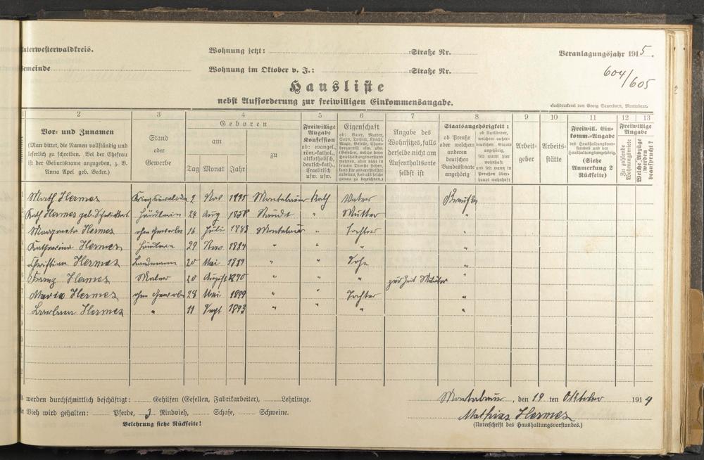 Hermes, Mathias Hermes, Katharina geb. Schwickert Hermes, Margaretha Hermes, Katharina Hermes, Christian Hermes, Franz Hermes, Maria Elise Hermes, Barbara