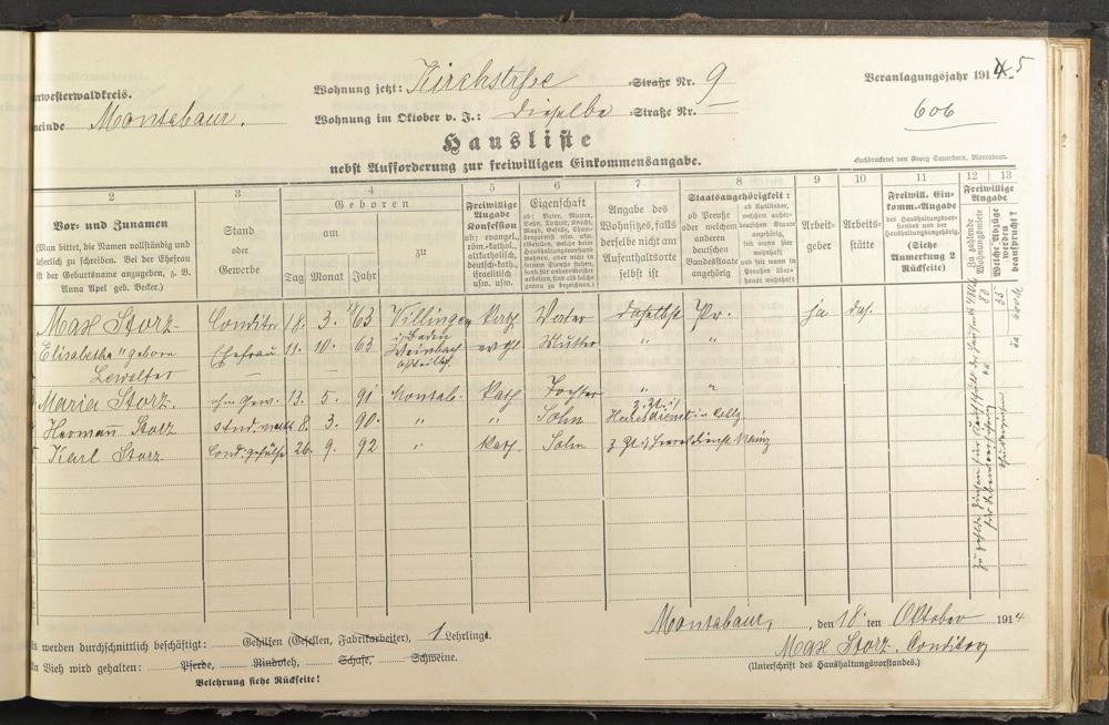 Haushaltsliste 1914/15, Kirchstraße bis Markt