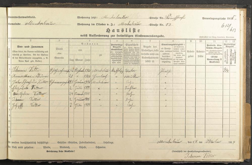 Vetter, Johann Vetter, Anna Maria geb. Dörr [?] Vetter, Peter Theodor Vetter, Elisabeth Vetter, Wilhelm Vetter, Johann 2. Vetter, Joseph