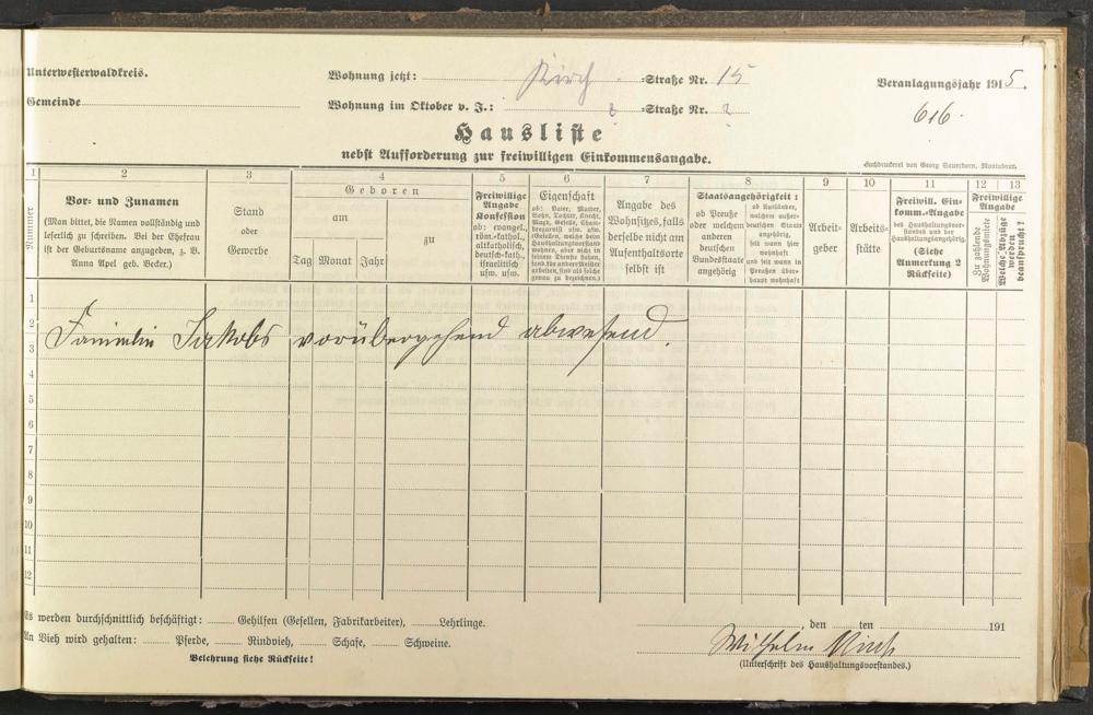 Haushaltsliste 1915, Band I., Abteilung 4, A 280