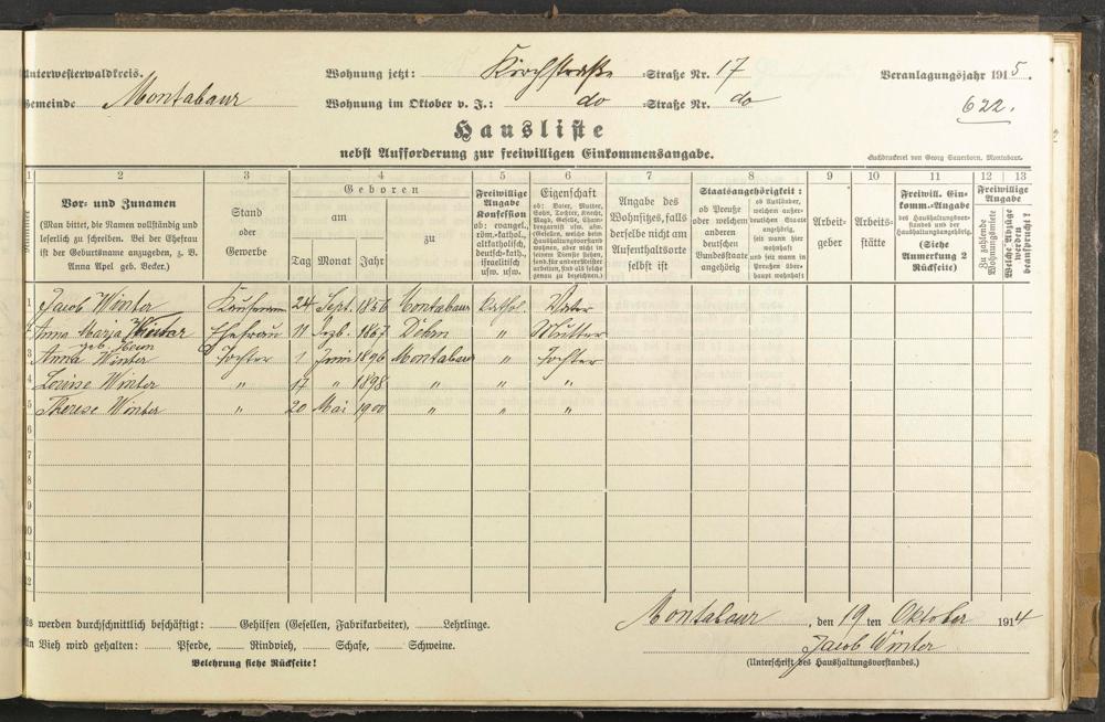 Winter, Jacob Winter, Anna Maria geb. Heun Winter, Anna Winter, Luise Margareta Winter, Helene Therese