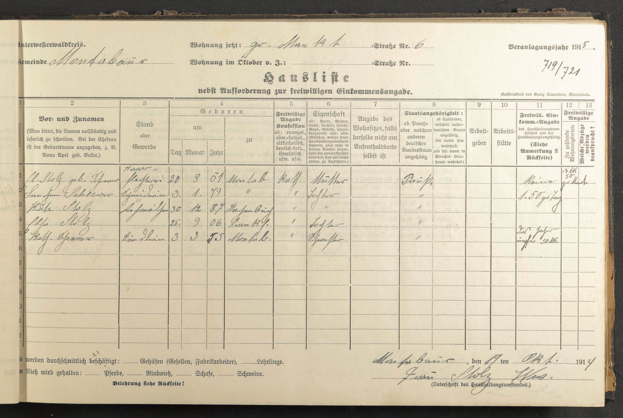Haushaltsliste 1915, Band I., Abteilung 4, A 280