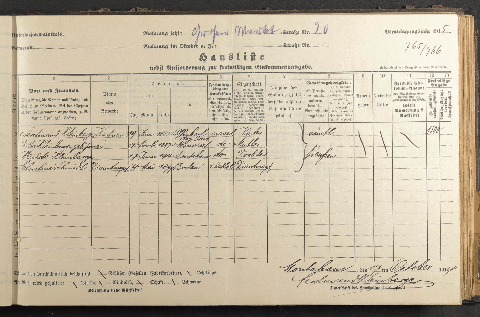 Haushaltsliste 1915, Band I., Abteilung 4, A 280