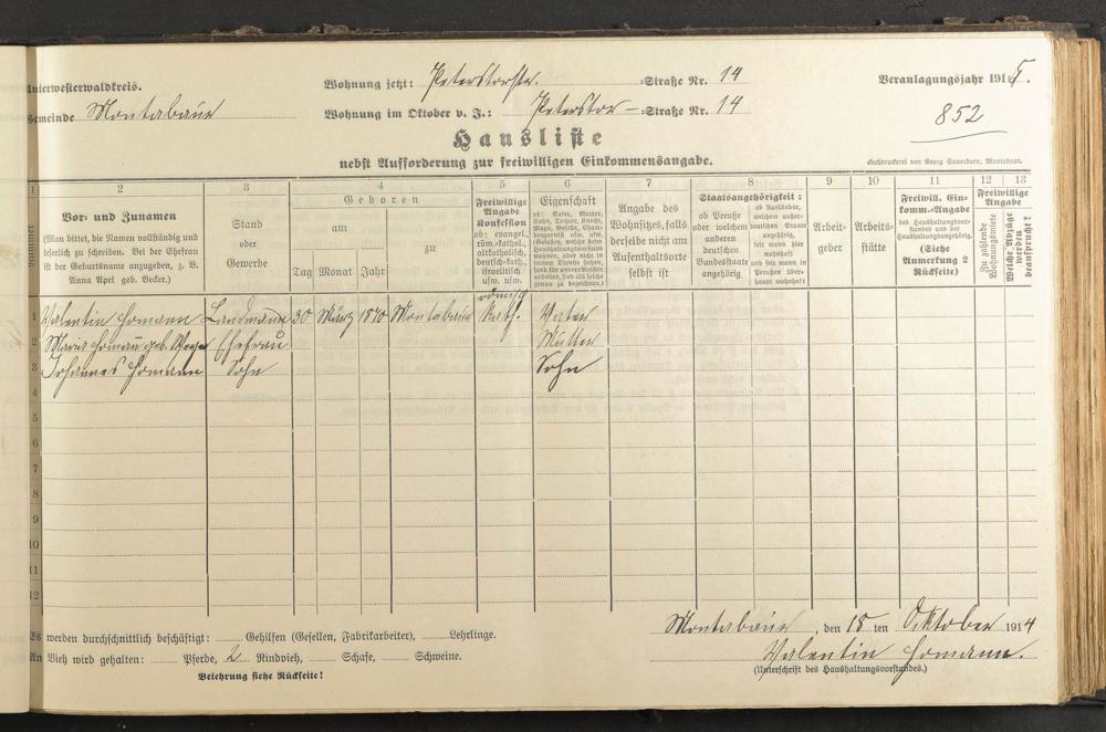Haushaltsliste 1915, Band II., Abteilung 4, A 281