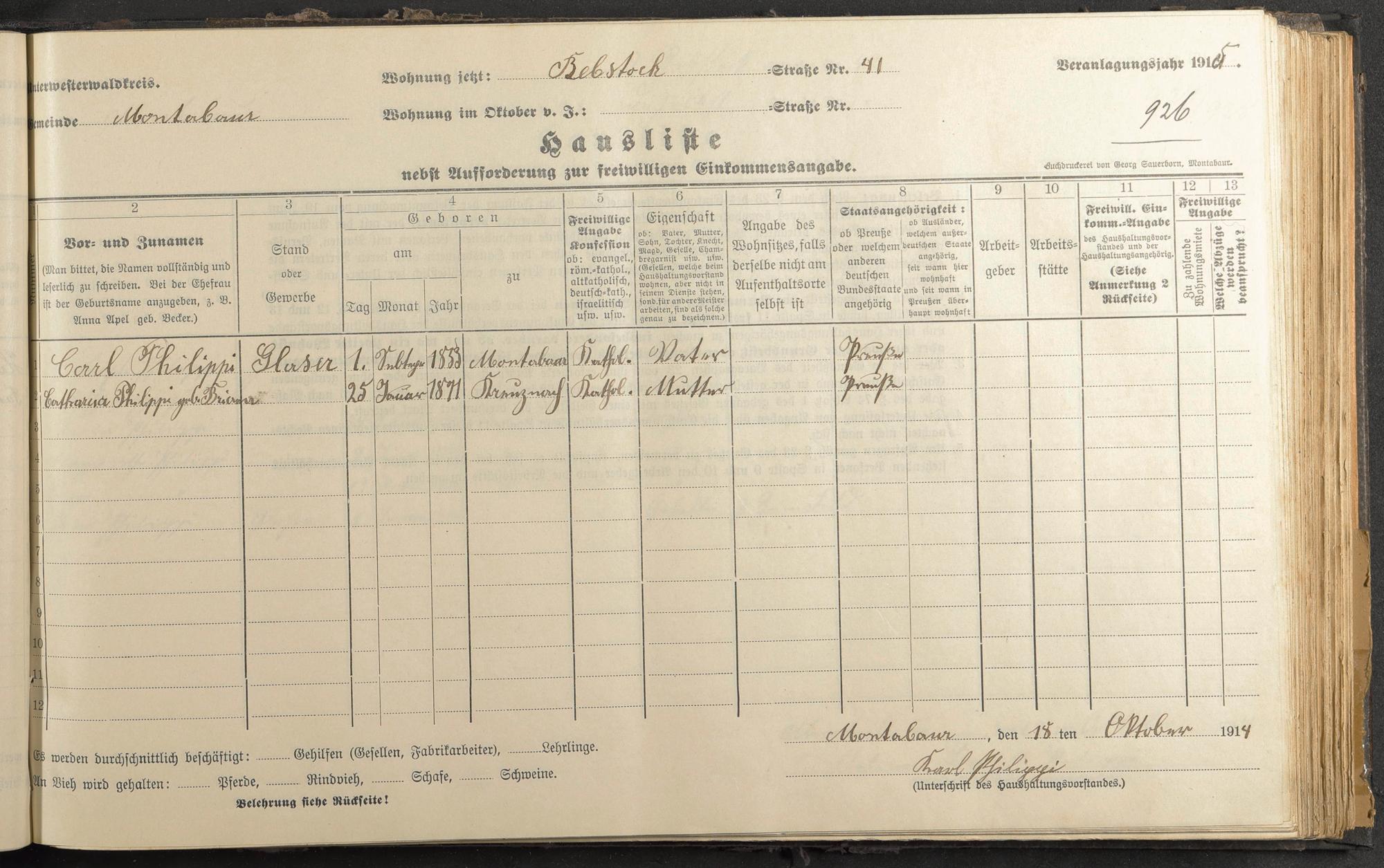 Haushaltsliste 1915, Band II., Abteilung 4, A 281