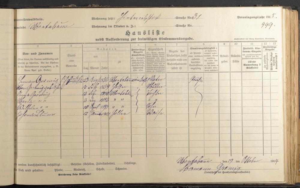 Haushaltsliste 1915, Band II., Abteilung 4, A 281