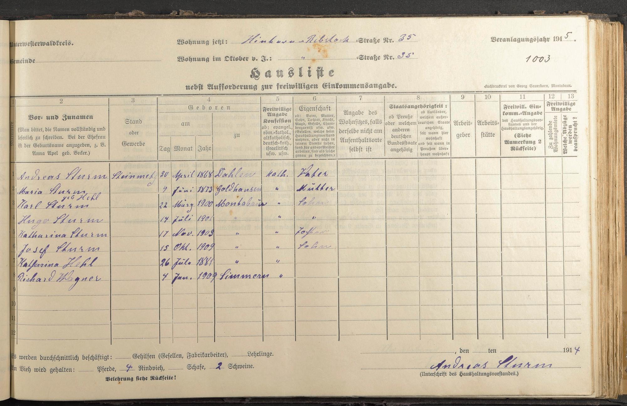 Sturm, Andreas Sturm, Maria geb. Hehl Sturm, Karl Sturm, Hugo Sturm, Katharina Sturm, Josef Hehl, Katharina Wagner, Richard