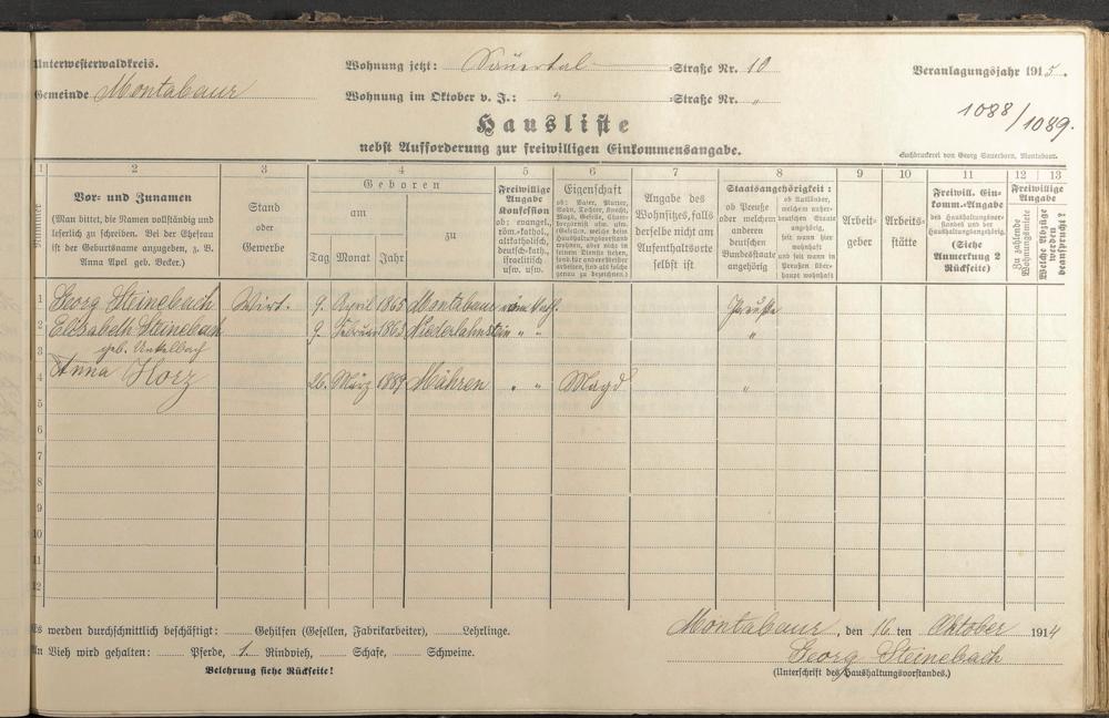 Haushaltsliste 1915, Band II., Abteilung 4, A 281