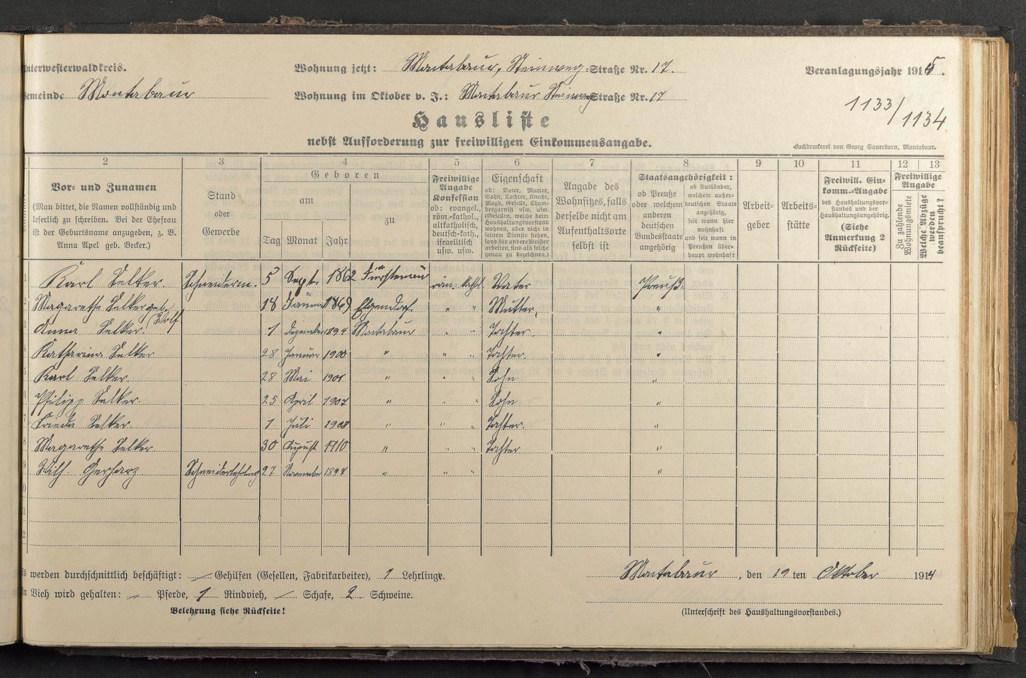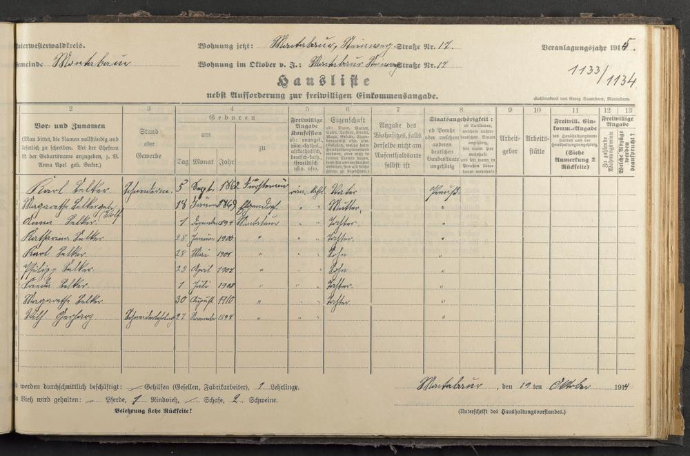 Selker, Karl Selker, Maragetha geb. Wolf Selker, Anna Selker, Katharina Selker, Karl Selker, Philipp Selker, Frieda Selker, Magarete Gerharz, Wilhelm