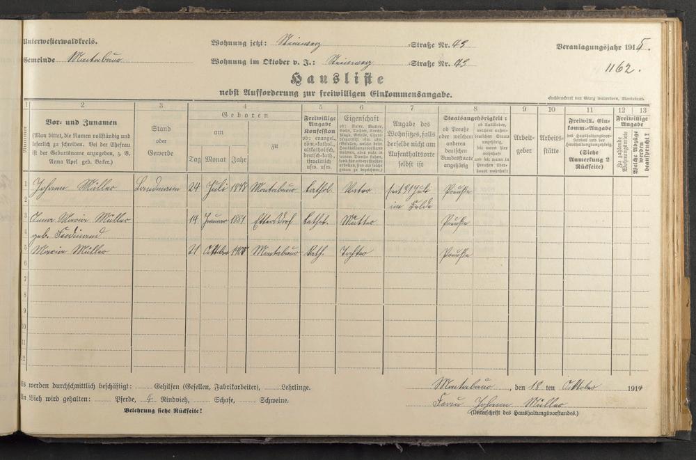Haushaltsliste 1915, Band II., Abteilung 4, A 281