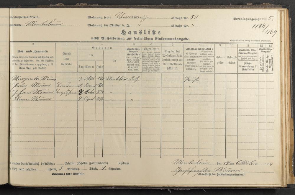 Haushaltsliste 1915, Band II., Abteilung 4, A 281