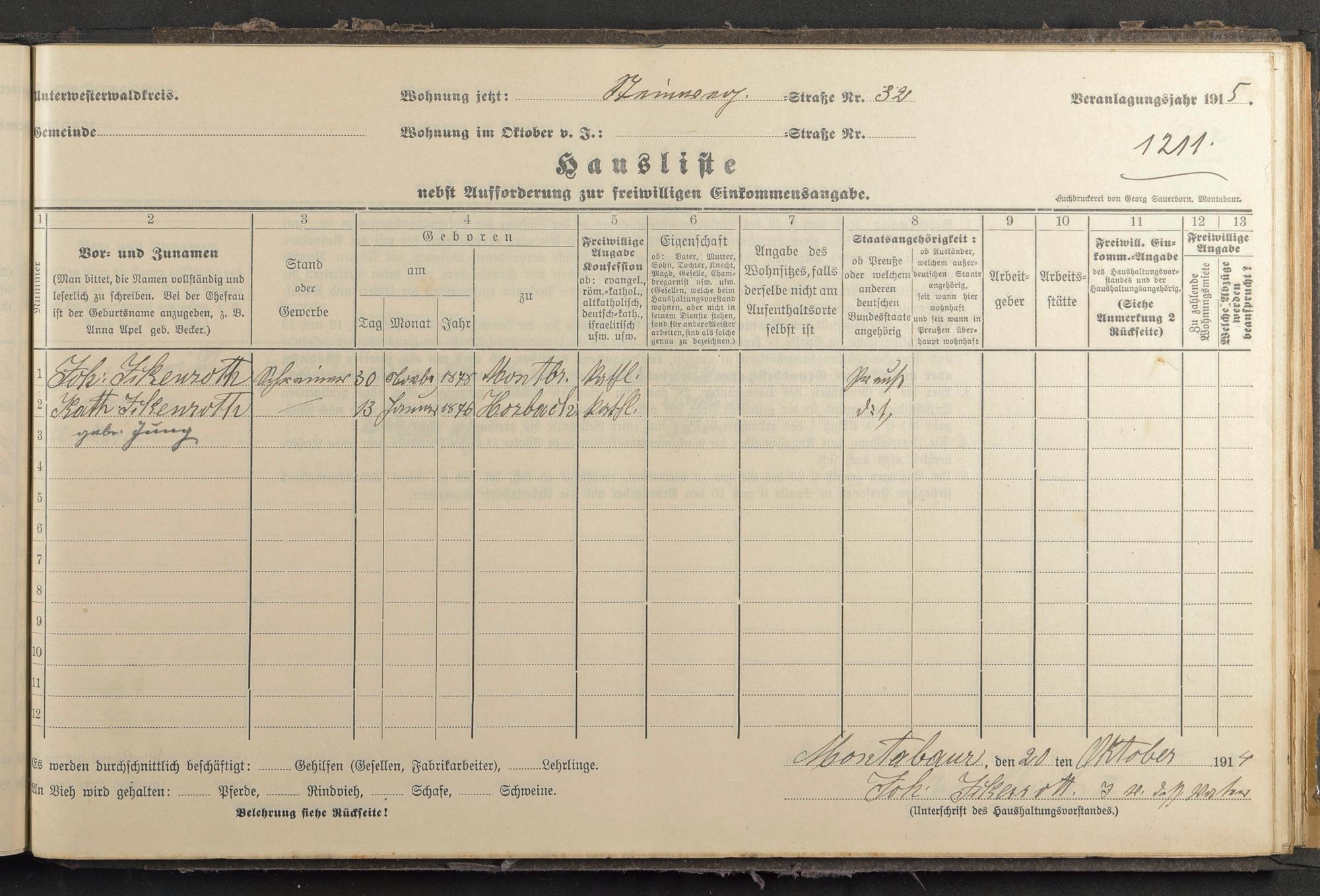 Haushaltsliste 1915, Band II., Abteilung 4, A 281
