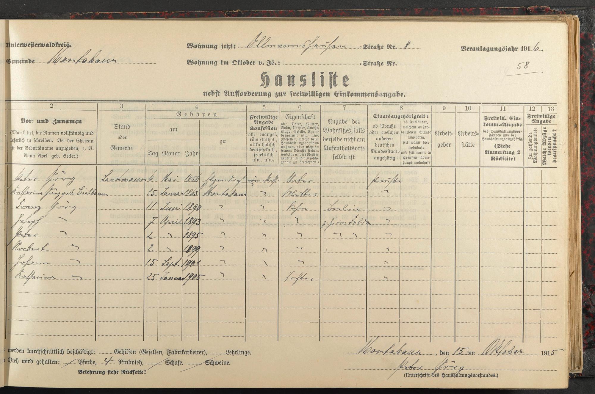Görg, Peter Görg, Katharina geb. Eichbaum Görg, Franz Görg, Josef Görg, Peter Görg, Norbert Görg, Johann Görg, Katharina