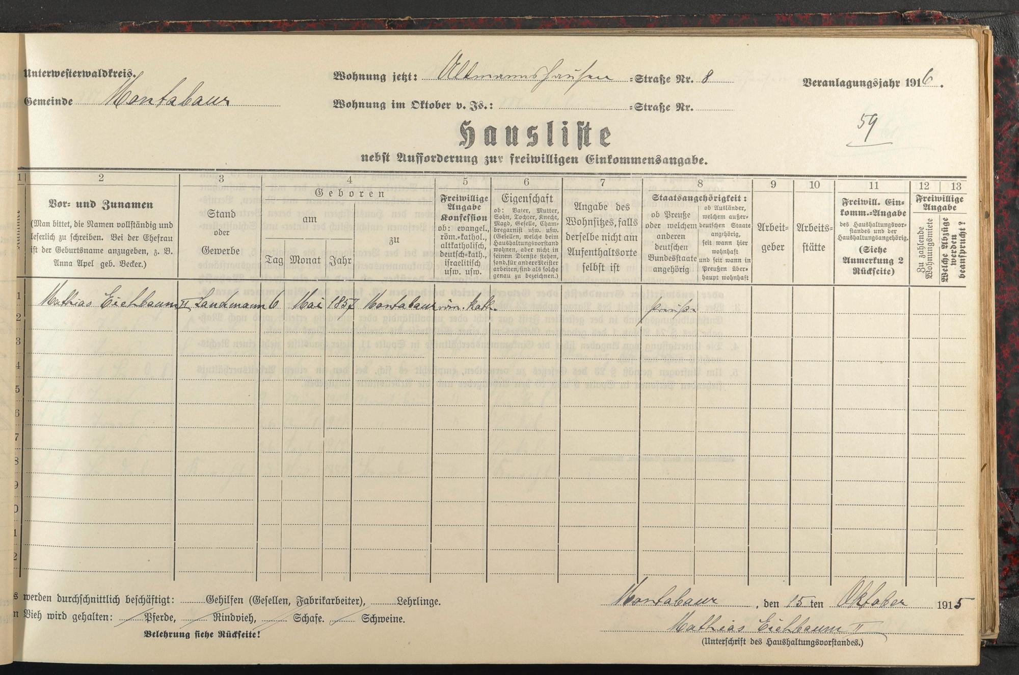 Haushaltsliste 1915/16, Kaiserstraße bis Markt