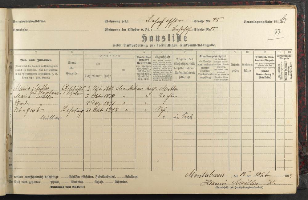 Haushaltsliste 1916, Band I., Abteilung 4, A 282