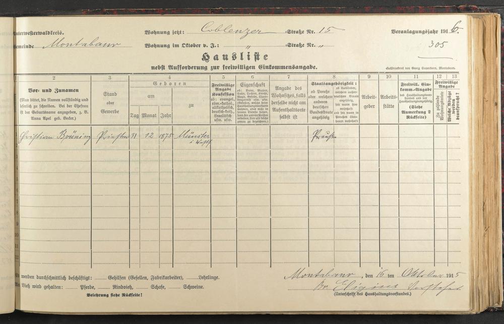 Haushaltsliste 1915/16, Coblenzer Straße bis Judengasse