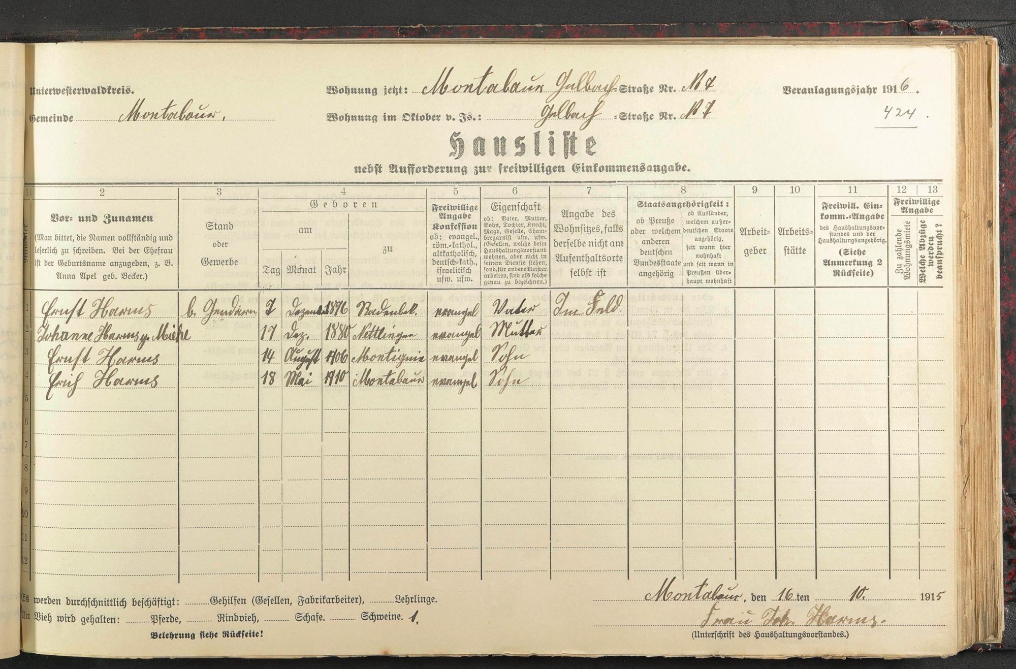 Haushaltsliste 1916, Band I., Abteilung 4, A 282