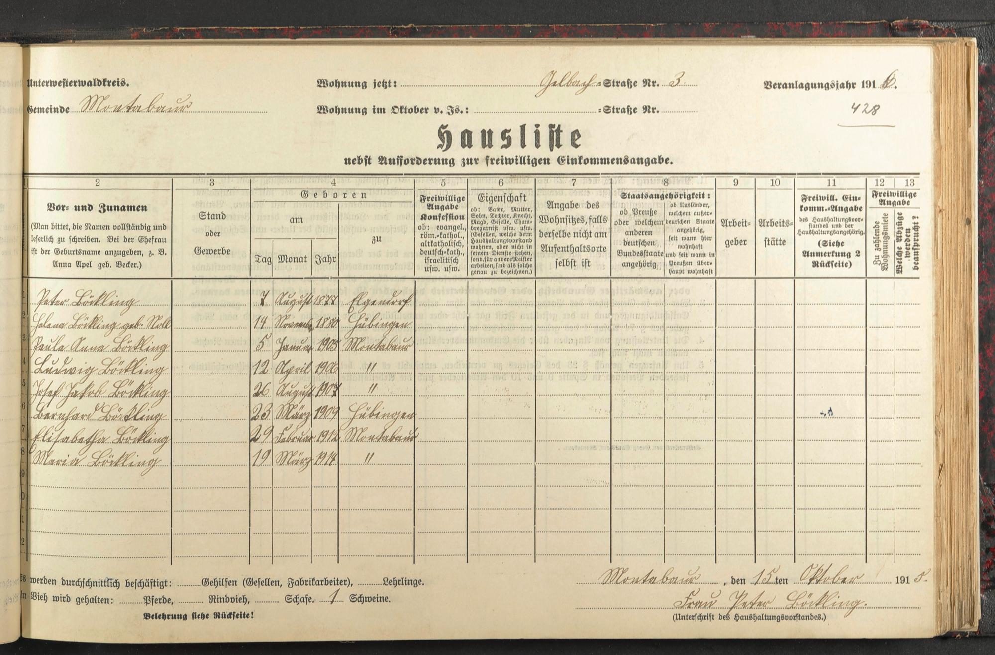 Haushaltsliste 1916, Band I., Abteilung 4, A 282 Haushaltsliste 1915/16, Coblenzer Straße bis Judengasse Gelbachstraße