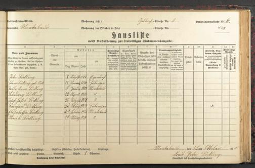 Haushaltsliste 1915/16, Kaiserstraße bis Markt