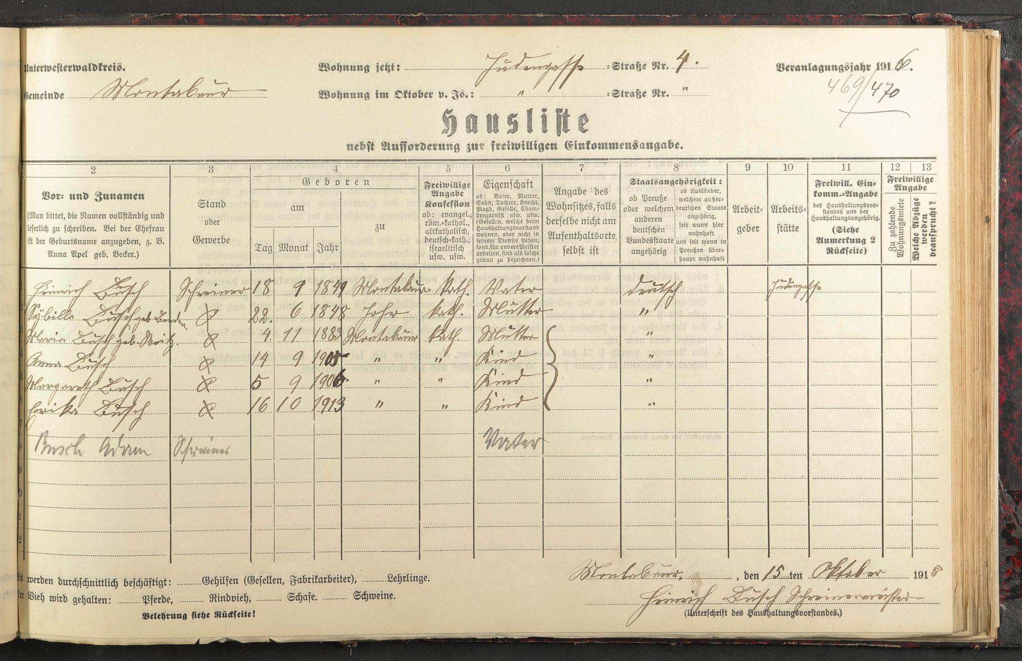 Busch, Heinrich Busch, Sybilla geb. Bender Busch, Maria geb. Reitz Busch, Anna Busch, Margaretha Busch, Erika Busch, Adam