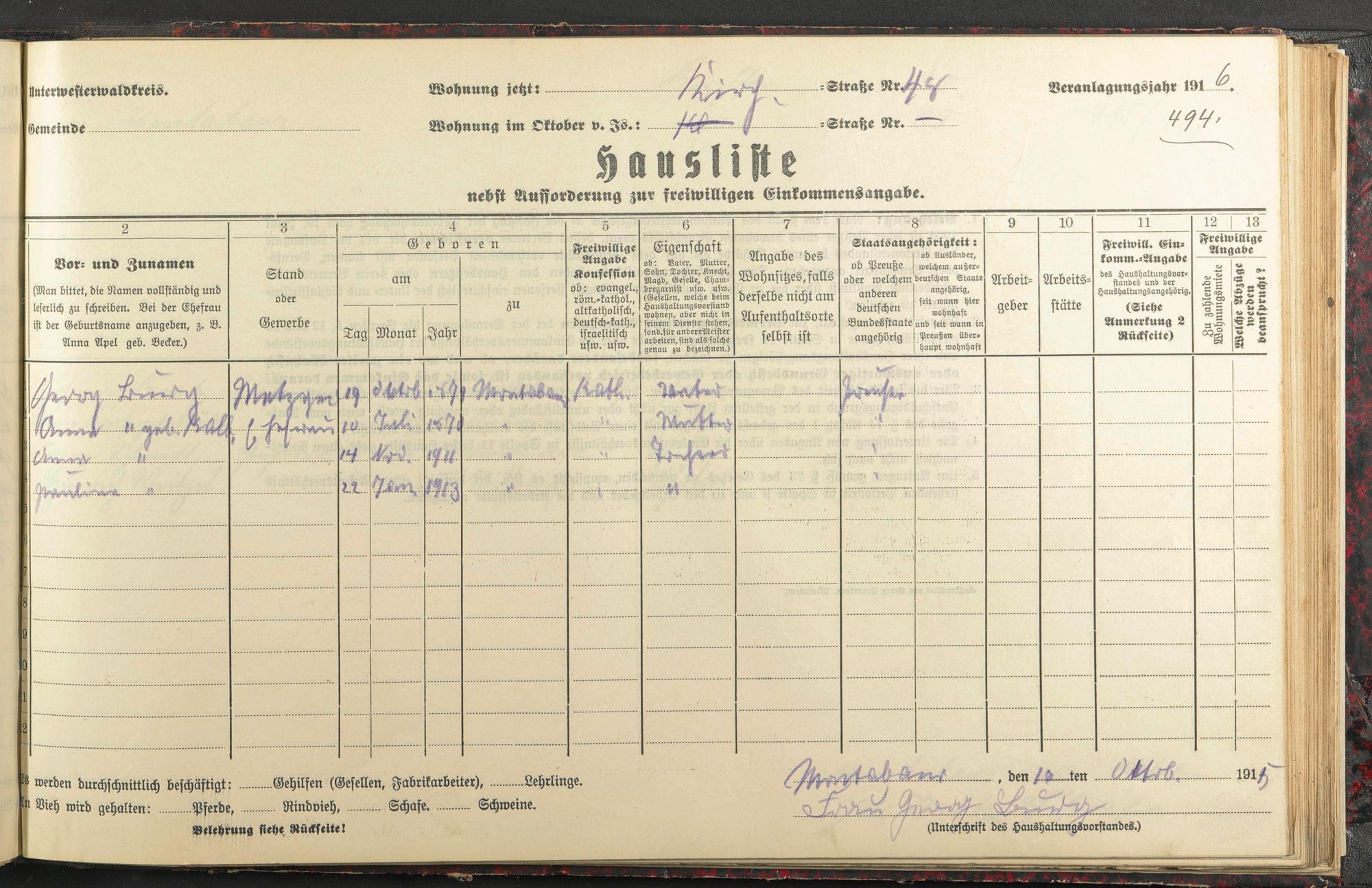 Haushaltsliste 1916, Band I., Abteilung 4, A 282