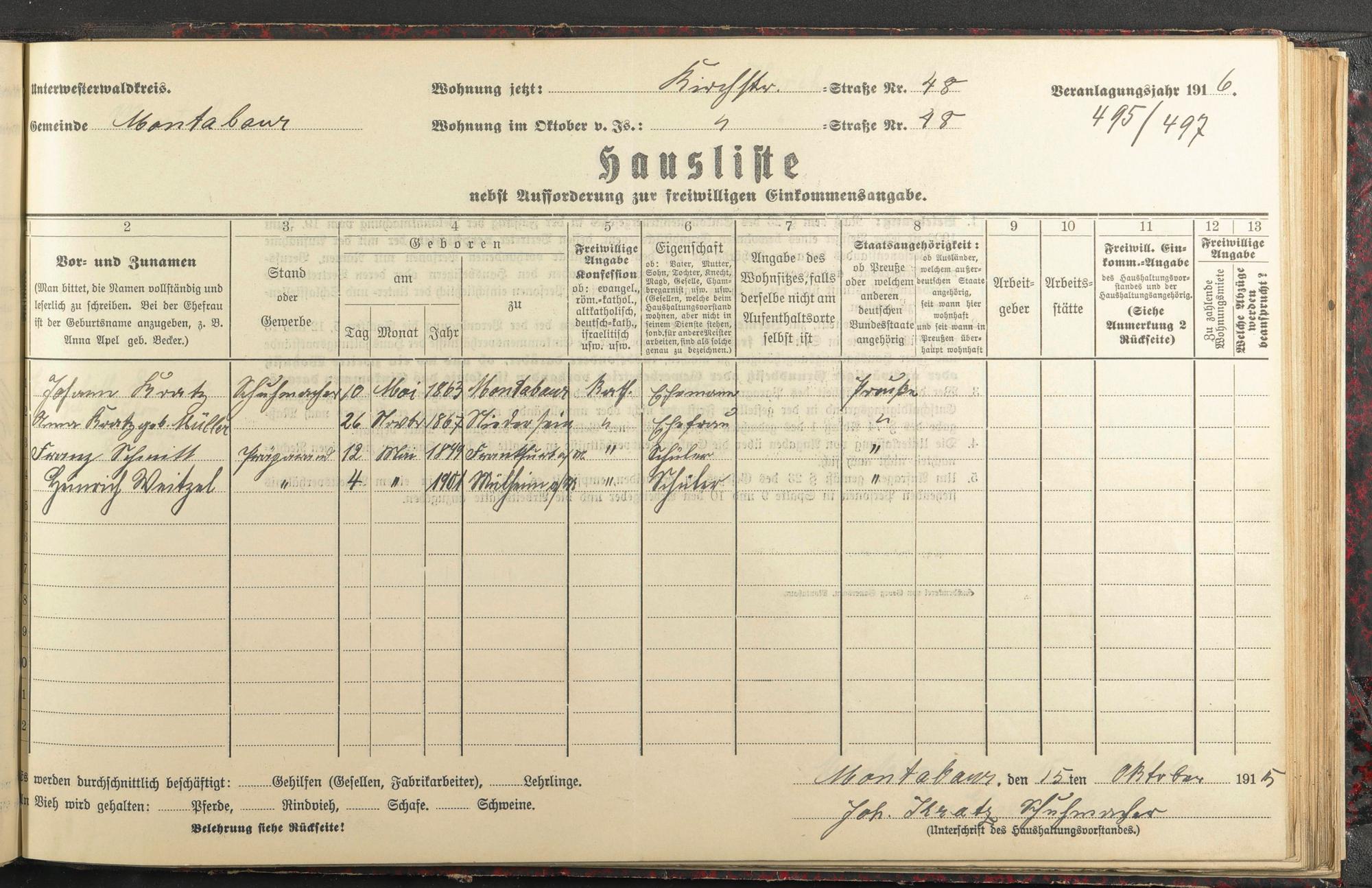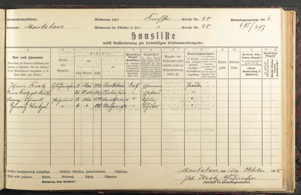 Haushaltsliste 1915/16, Kaiserstraße bis Markt