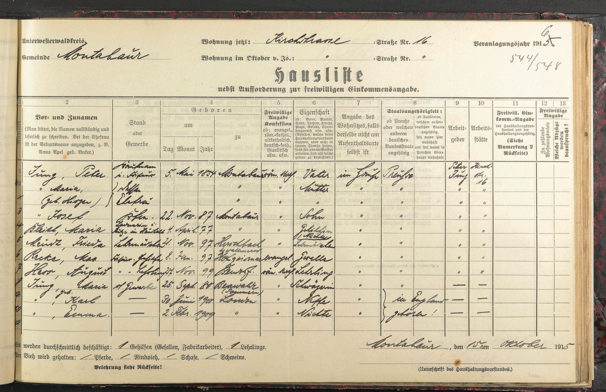 Jung, Peter Jung, Maria geb. Hisgen Jung, Josef Bleidt, Maria Meudt, Frieda Recke, Max Hess, Joh. Jac. August Jung, Maria Jung, Karl Jung, Emma