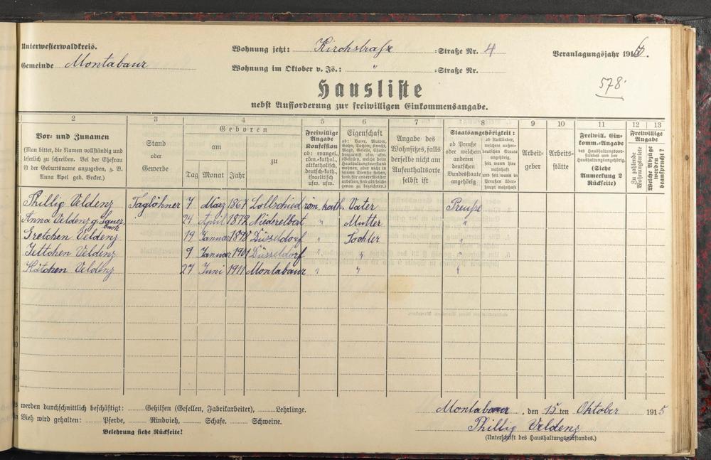 Veldenz, Philipp Veldenz, Anna Maria geb. Sauerbach Veldenz, Margareta Veldenz, Henriette Veldenz, Katharina