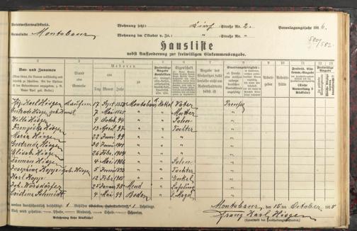 Hisgen, Franz Karl Hisgen, Gertrude geb. Kunst Hisgen, Willi Hisgen, Franziska Hisgen, Maria Hisgen, Gertrude Hisgen, Elisabeth Hisgen, Damian Kopp, Josefine geb. Hisgen Kopp, Franz Karl Wörsdörfer, Johann Schmidt, Christina