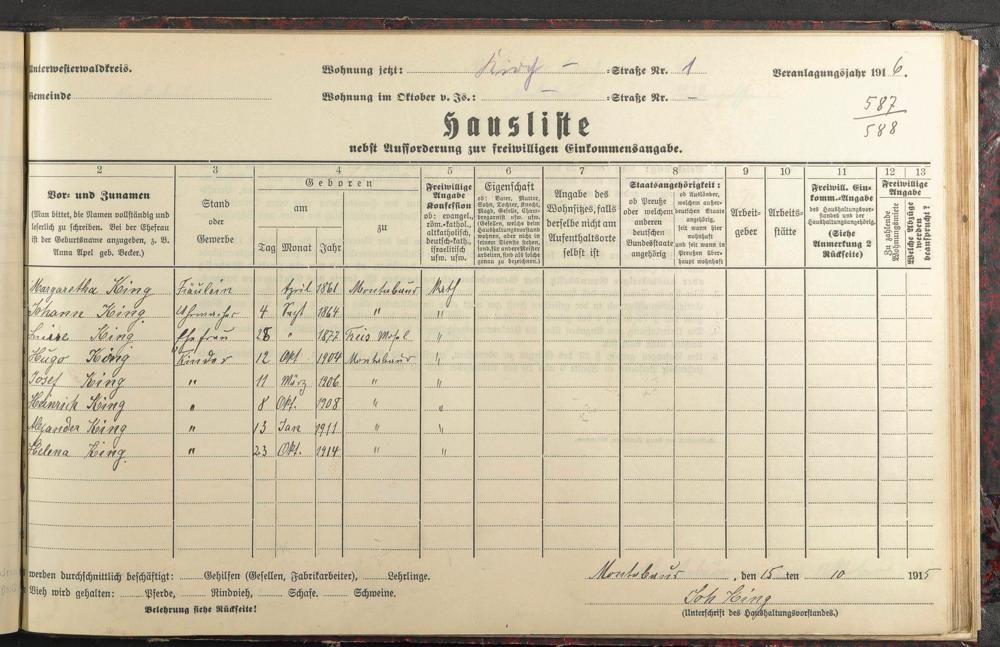 King, Margaretha King, Johann King, Luise geb. Mittnacht [?] King, Hugo King, Joseph King, Heinrich King, Alexander King, Helena