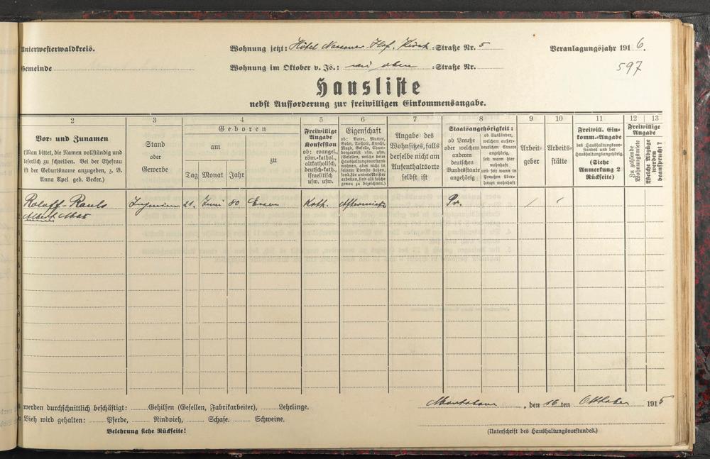 Haushaltsliste 1915/16, Kaiserstraße bis Markt