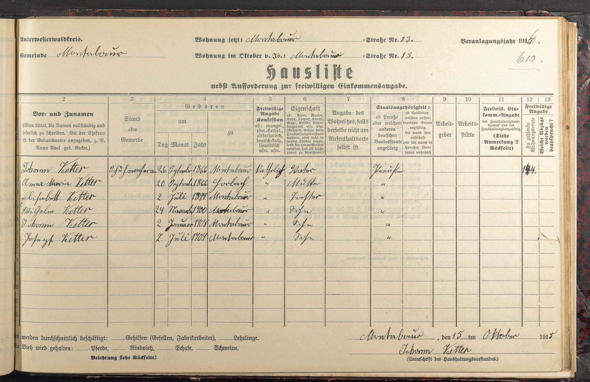 Vetter, Johann Vetter, Anna Maria geb. Dörr [?] [Dürr] Vetter, Elisabeth Vetter, Wilhelm Vetter, Johann 2. Vetter, Joseph