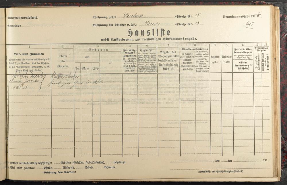 Haushaltsliste 1915/16, Kaiserstraße bis Markt