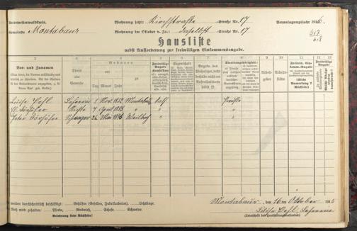 Haushaltsliste 1915/16, Kaiserstraße bis Markt