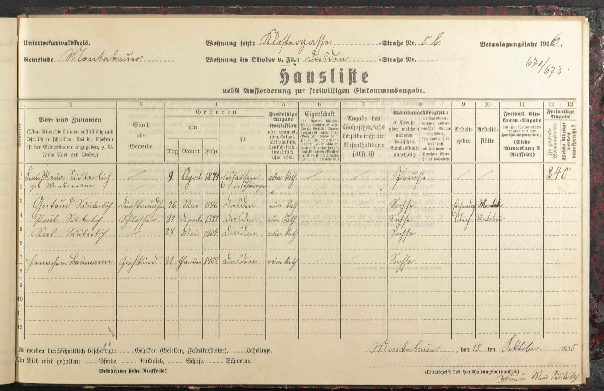 Säuberlich, Maria geb. Wenkemann Säuberlich, Gertrud Säuberlich, Paul Säuberlich, Karl Baumann, Hannchen