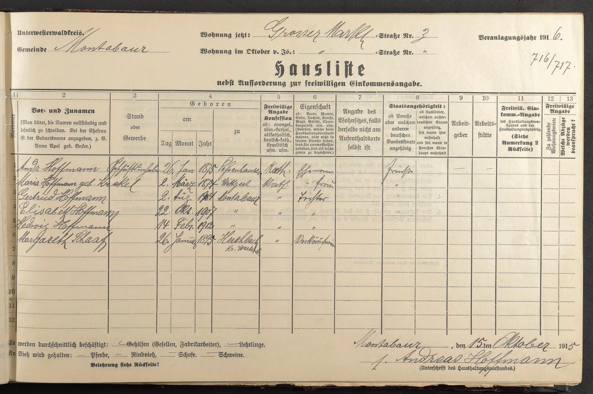 Hoffmann, Andreas Hoffmann, Maria geb. Krekel Hoffmann, Gertrud Hoffmann, Elisabeth Hoffmann, Hedwig Schaaf, Margarethe