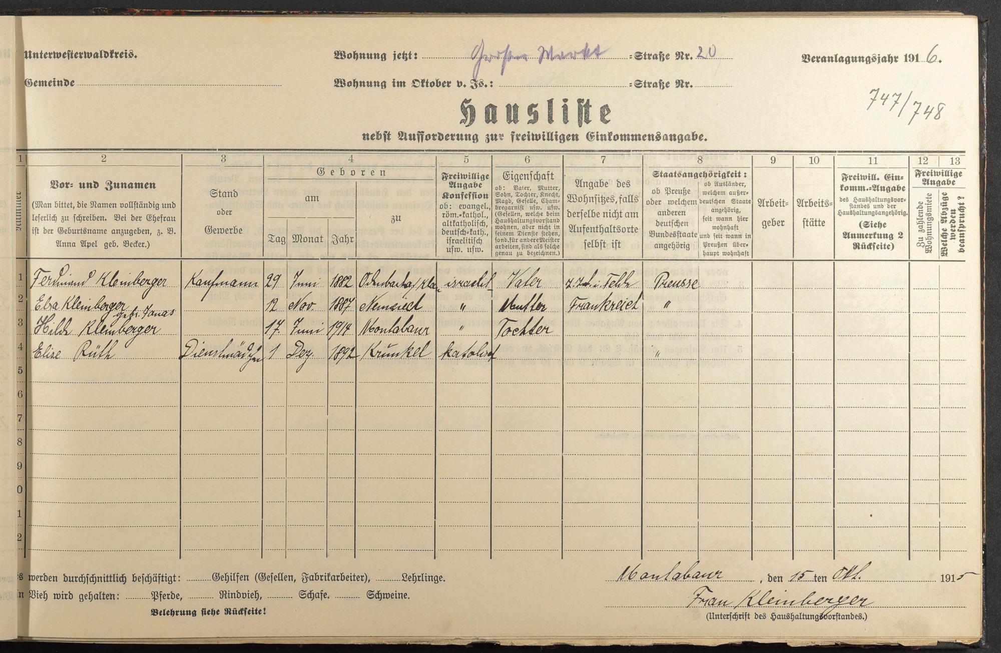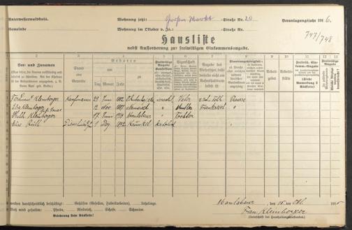 Haushaltsliste 1915/16, Kaiserstraße bis Markt
