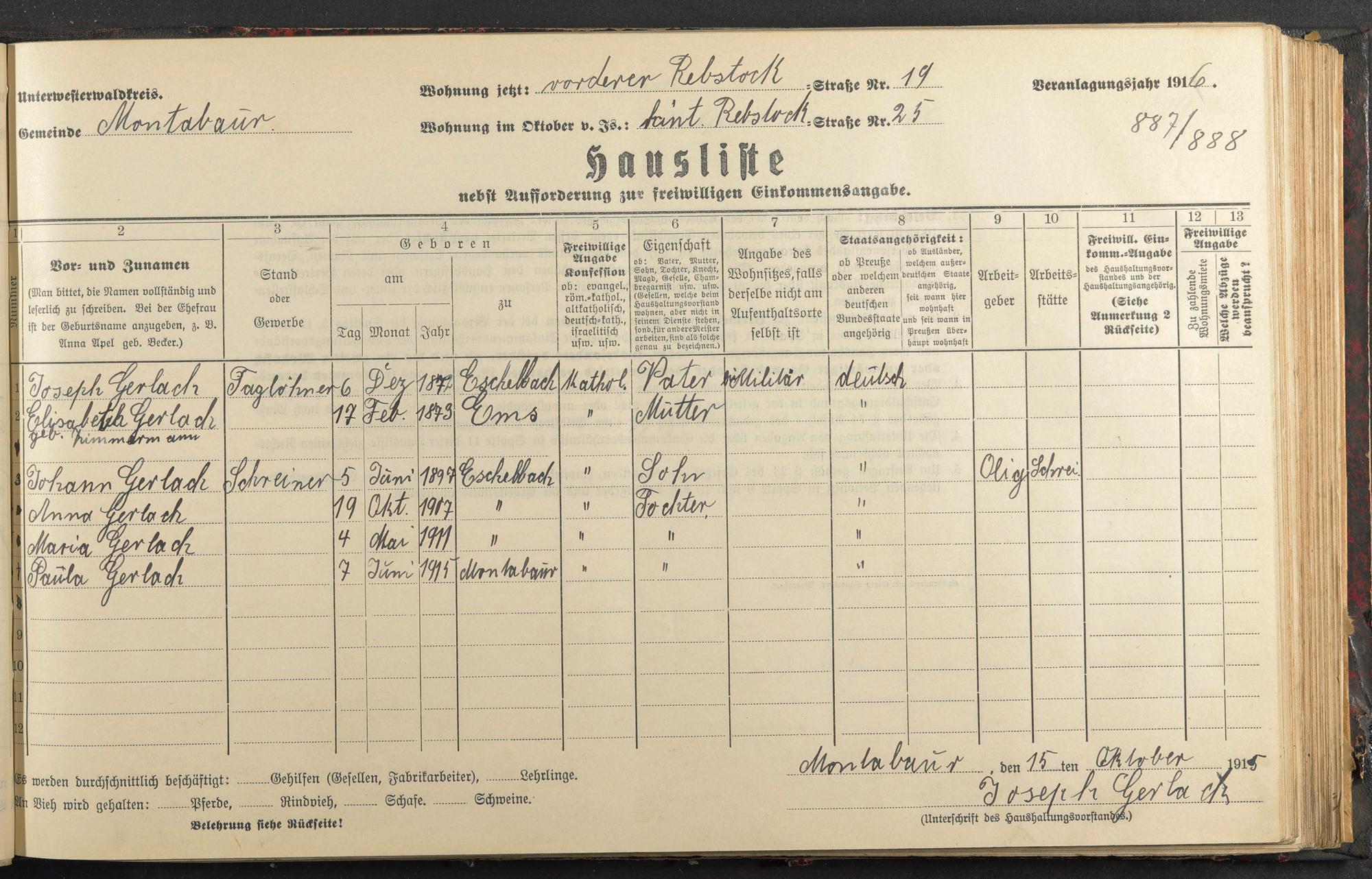 Gerlach, Josef Gerlach, Elisabeta geb. Zimmermann Gerlach, Johann Gerlach, Anna Gerlach, Maria Gerlach, Pauline