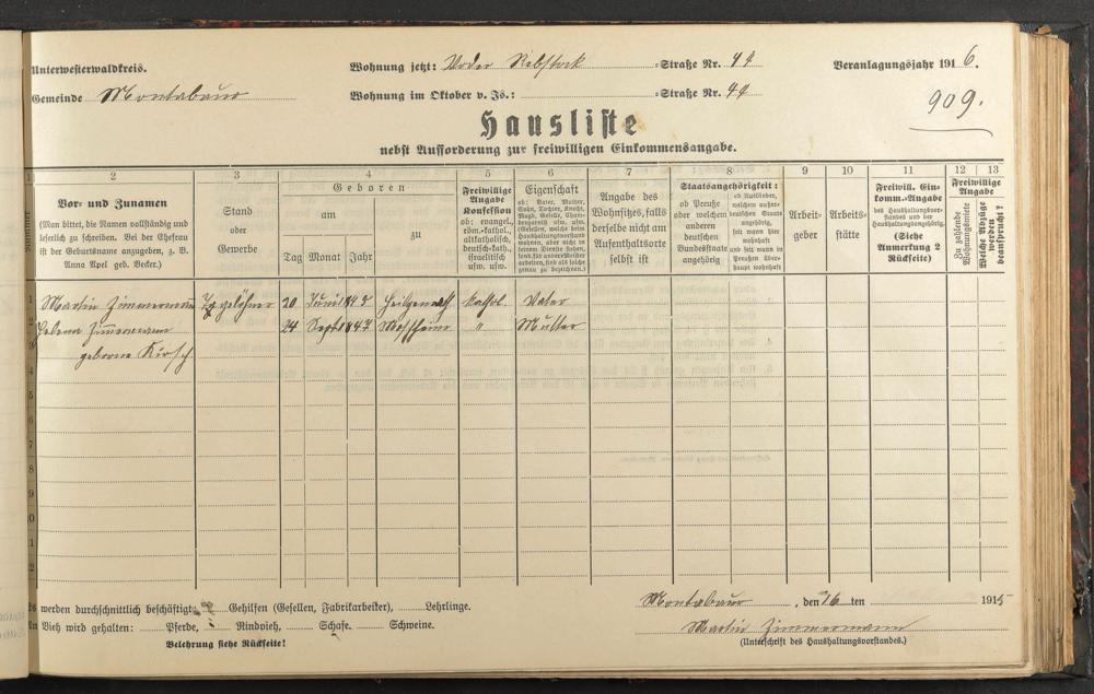 Haushaltsliste 1916, Band II., Abteilung 4, A 283