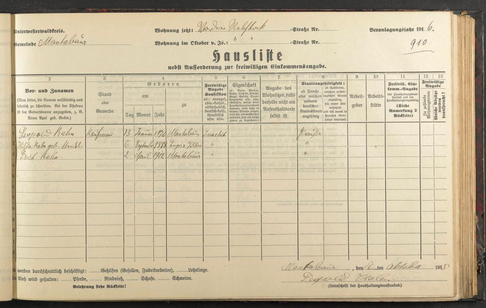 Haushaltsliste 1916, Band II., Abteilung 4, A 283
