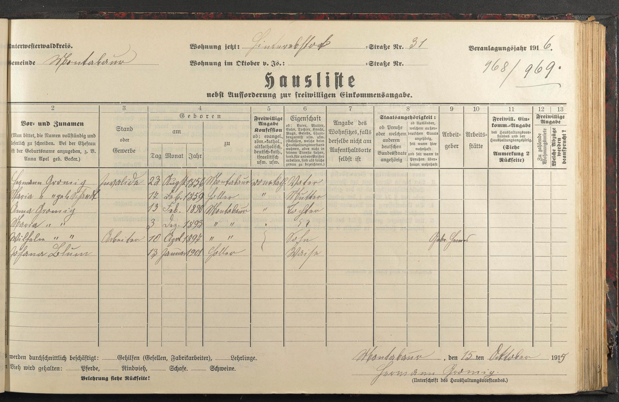 Haushaltsliste 1916, Band II., Abteilung 4, A 283