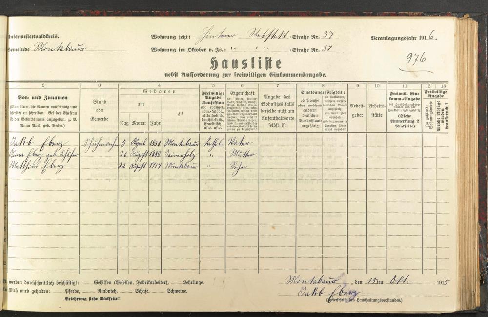 Haushaltsliste 1916, Band II., Abteilung 4, A 283
