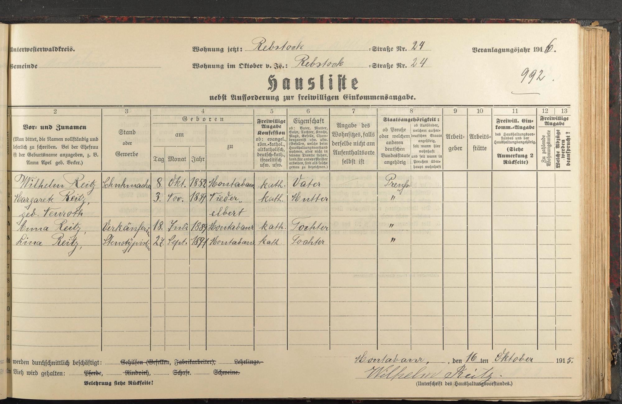 Haushaltsliste 1916, Band II., Abteilung 4, A 283