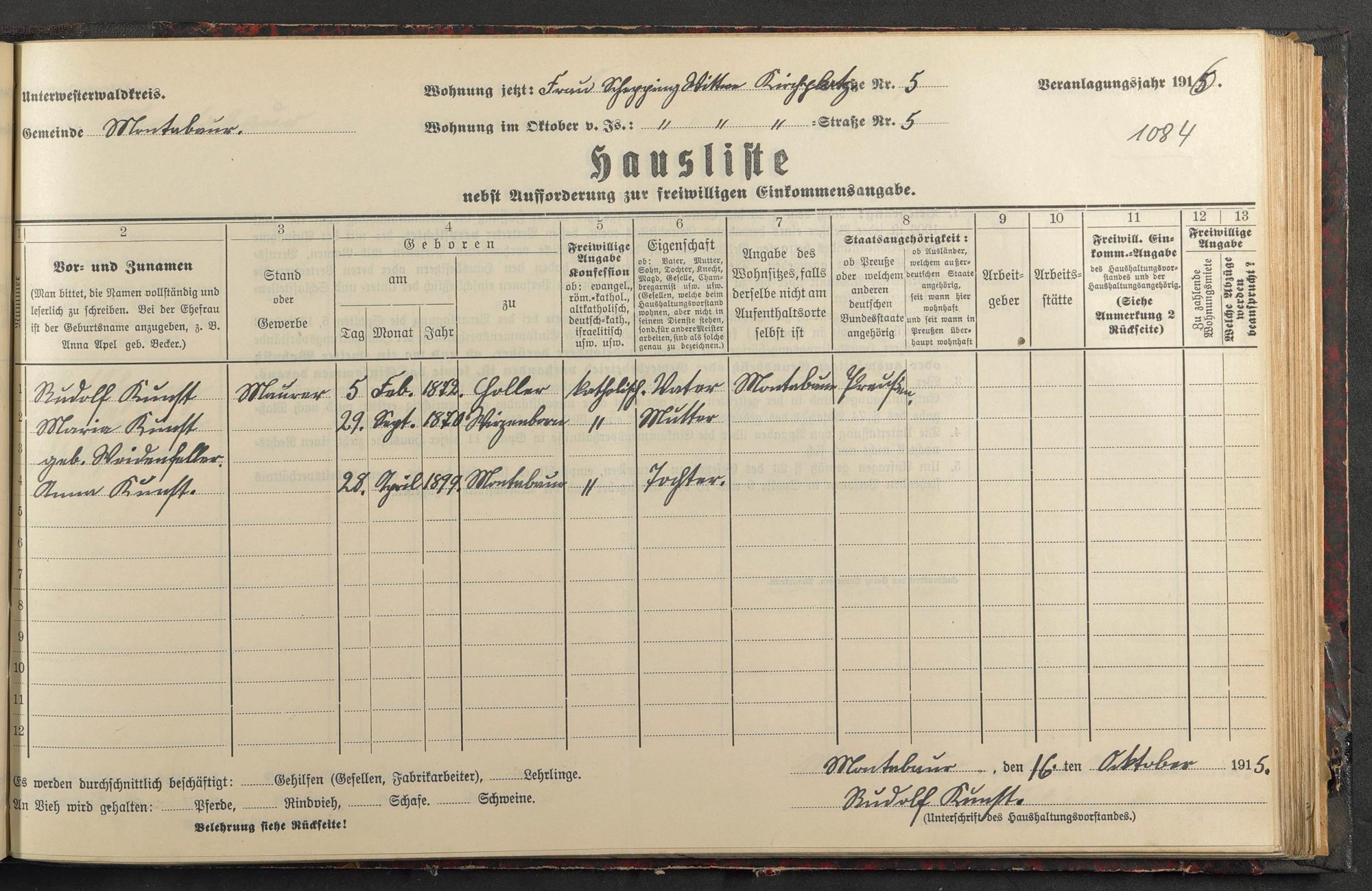 Haushaltsliste 1915/16, Sauertalstraße bis Werbhausgasse sowie Mühlen