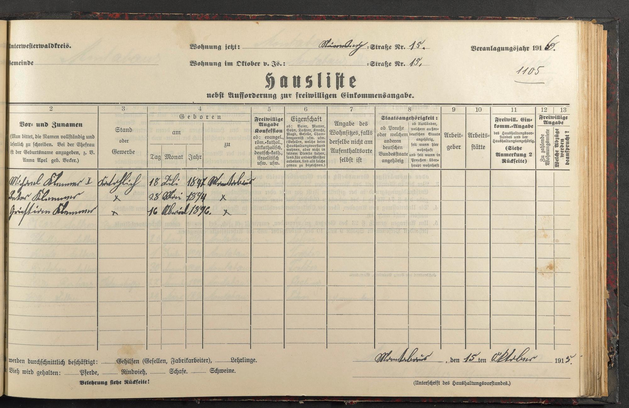 Haushaltsliste 1916, Band II., Abteilung 4, A 283